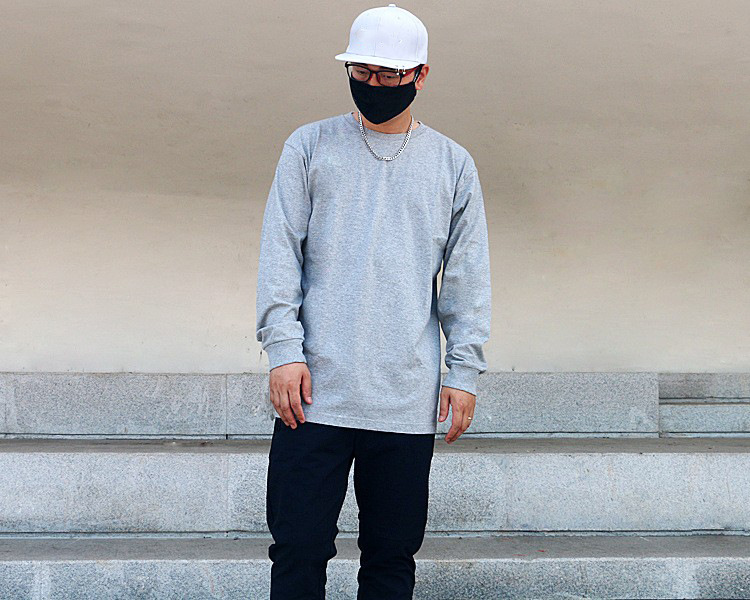 250g Japanisches schweres lockeres Langarm-T-Shirt aus Baumwolle für Männer und Frauen nahtloses Rundhals-Hemd mit weißem Boden T-Shirt