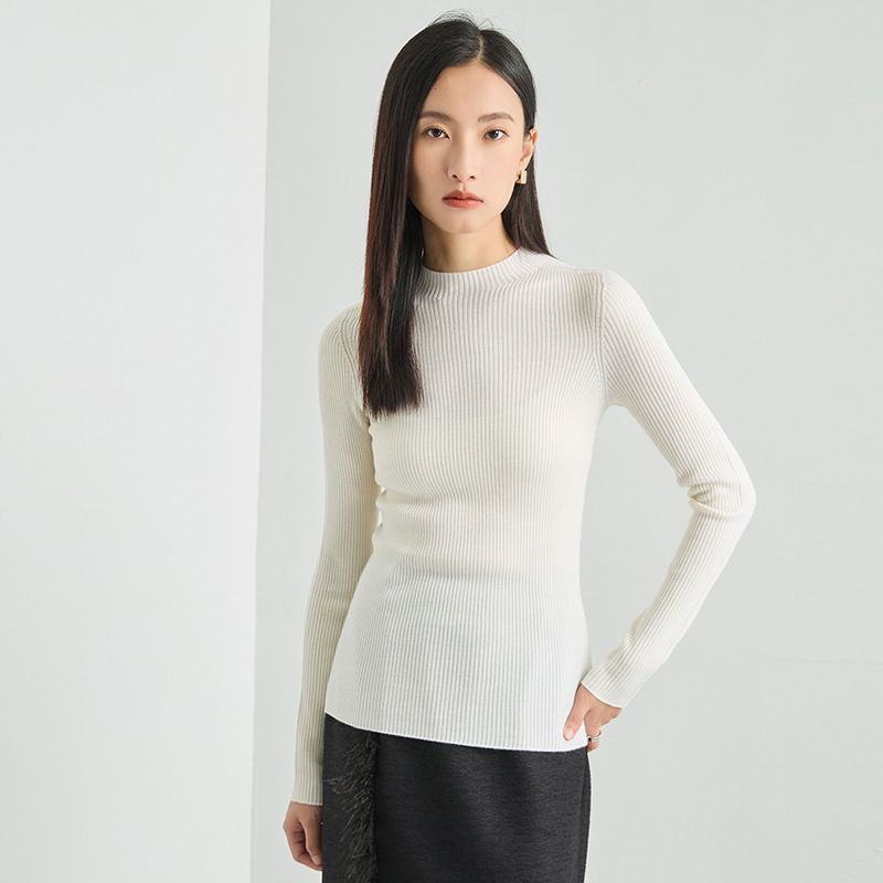 100% volle Wolle nahtlose Rundhals ausschnitt schlanke All-Match-Basis-Pullover Kammgarn Langarm-Innen pullover Frauen