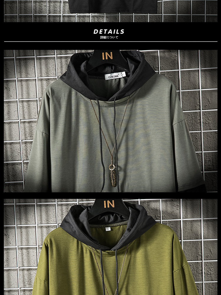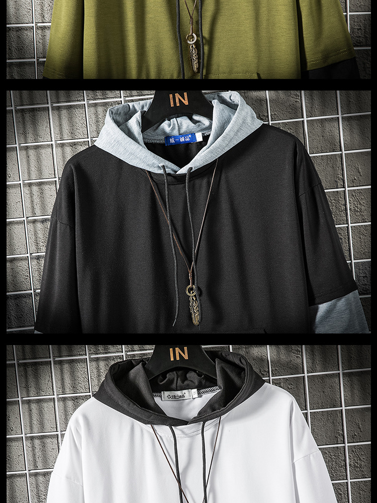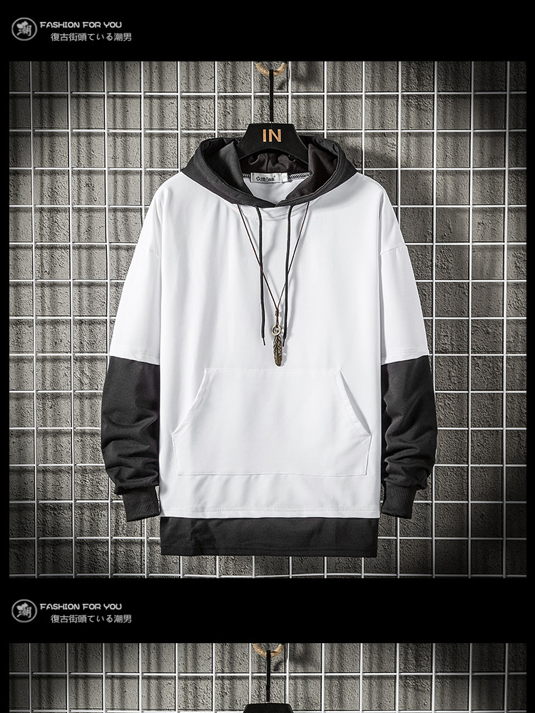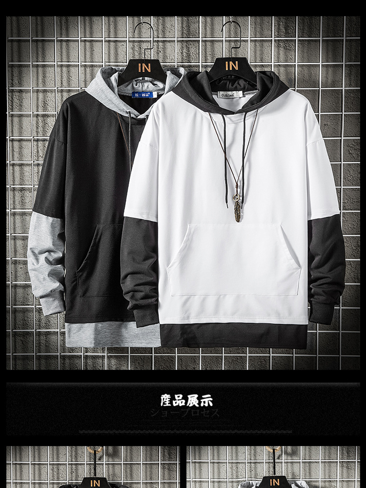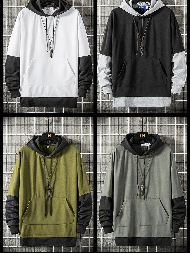 2023 Außenhandel plus Größe Herren bekleidung neuen Stil Herren Pullover Kapuze einfarbige Nähte plus Größe lose Jugend pullover