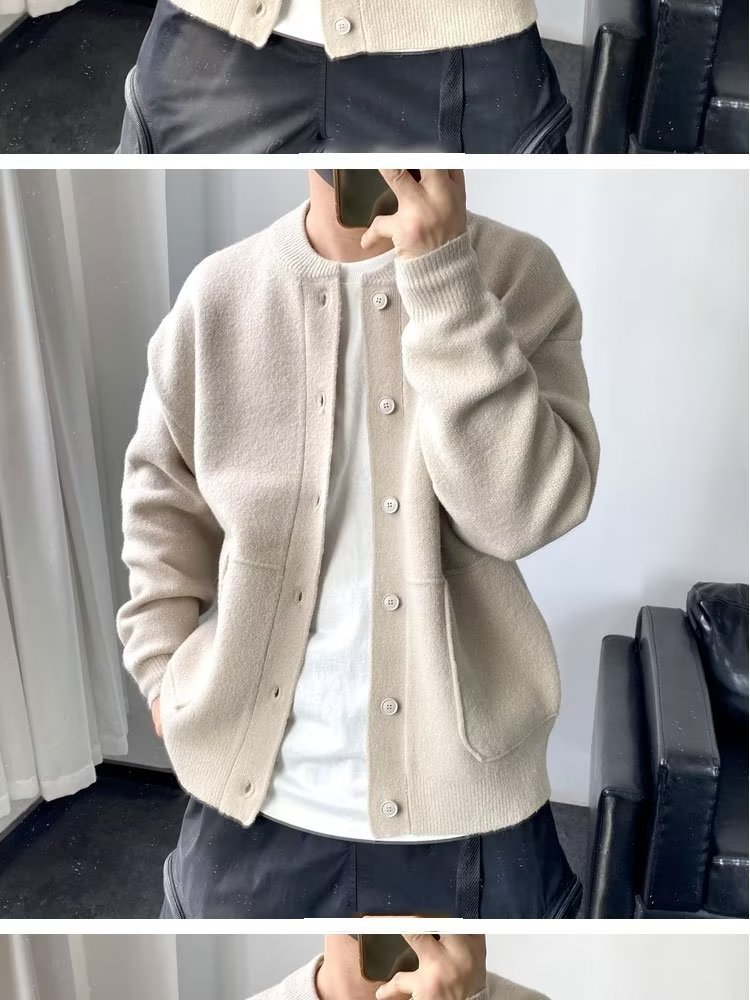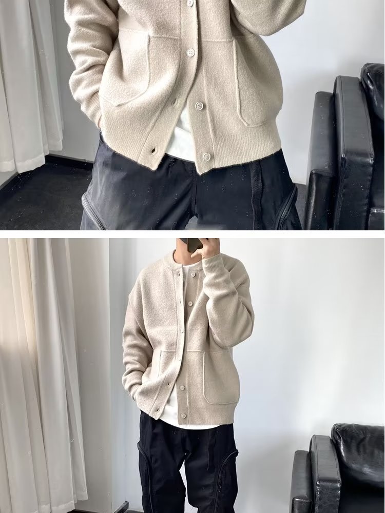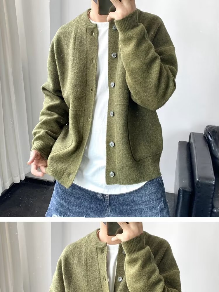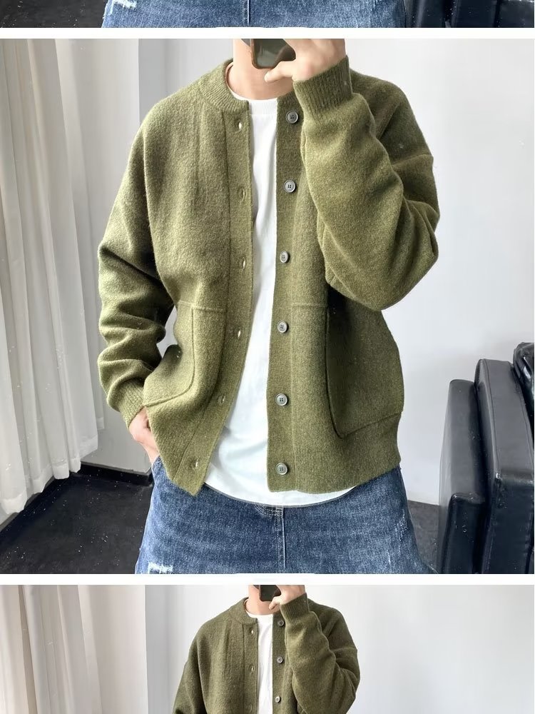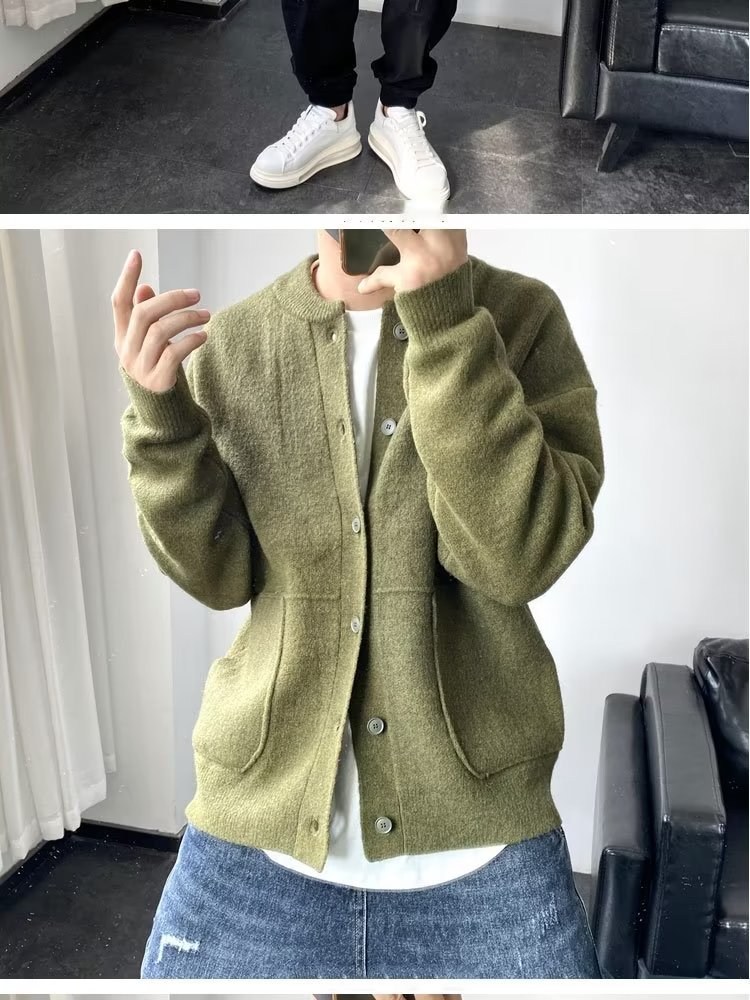 Japanische Rundhals-Strickjacke Herren Frühlings-und Herbst modelle Hong Kong Style Strick pullover Rundhals jacke einfache lose dicke Pullover jacke