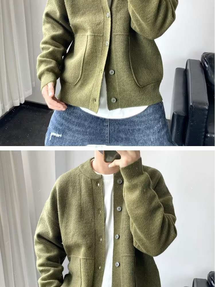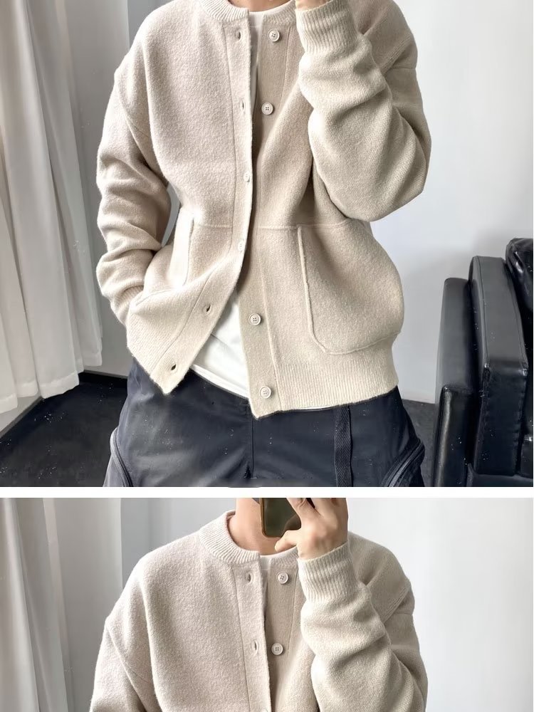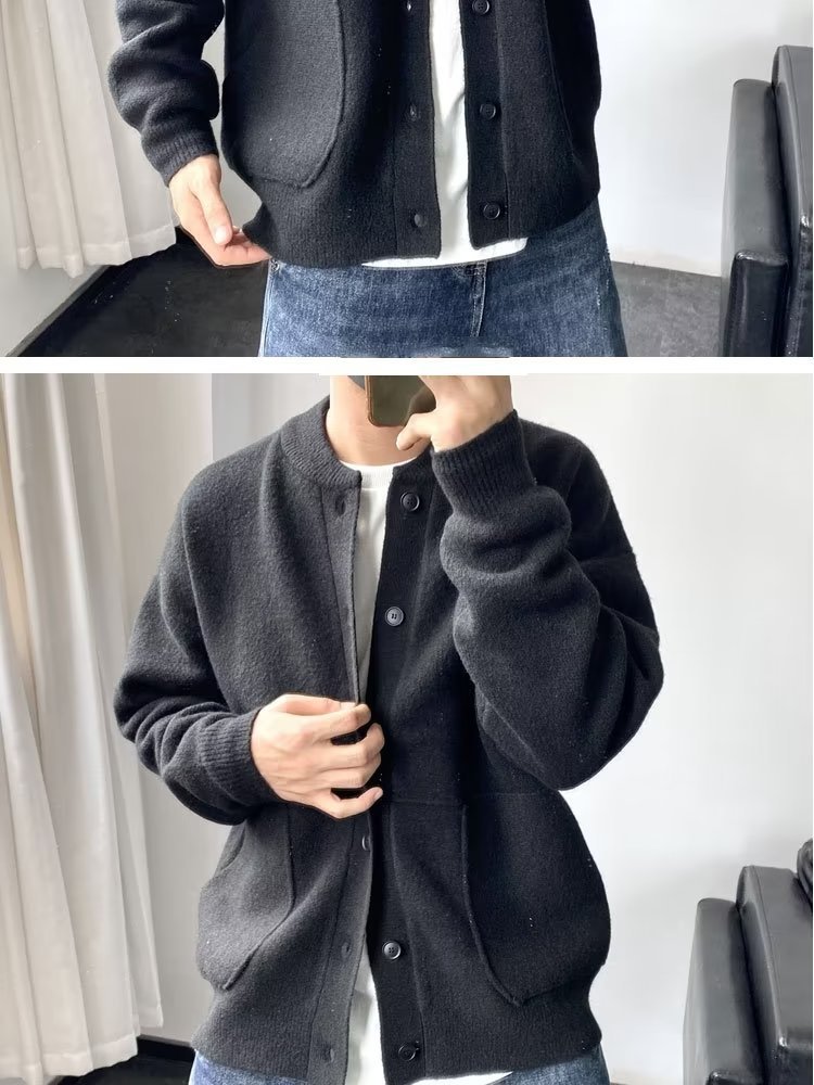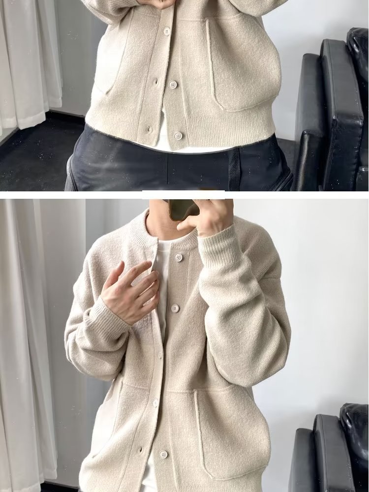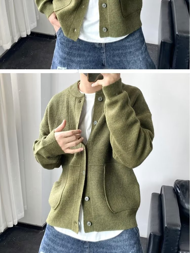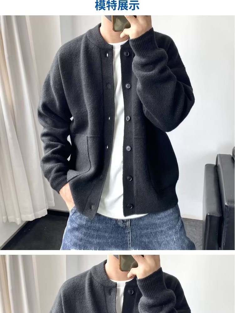 Japanische Rundhals-Strickjacke Herren Frühlings-und Herbst modelle Hong Kong Style Strick pullover Rundhals jacke einfache lose dicke Pullover jacke