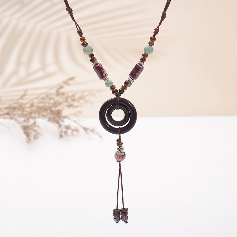 Neue Retro ethnische Keramik Halskette Frauen lange Pullover Kette grenz überschreitende Schmuck Accessoires Hersteller Großhandel