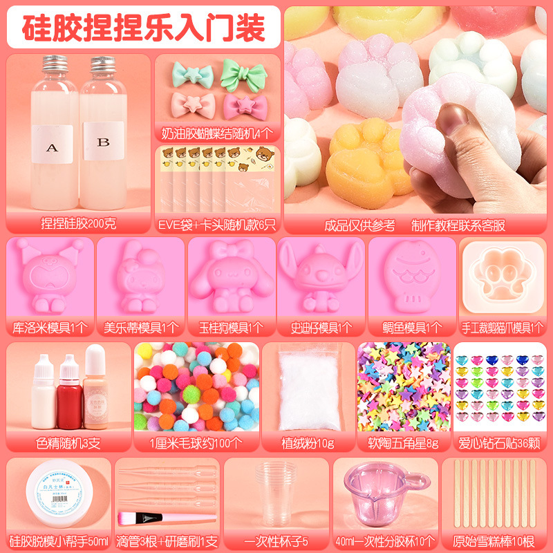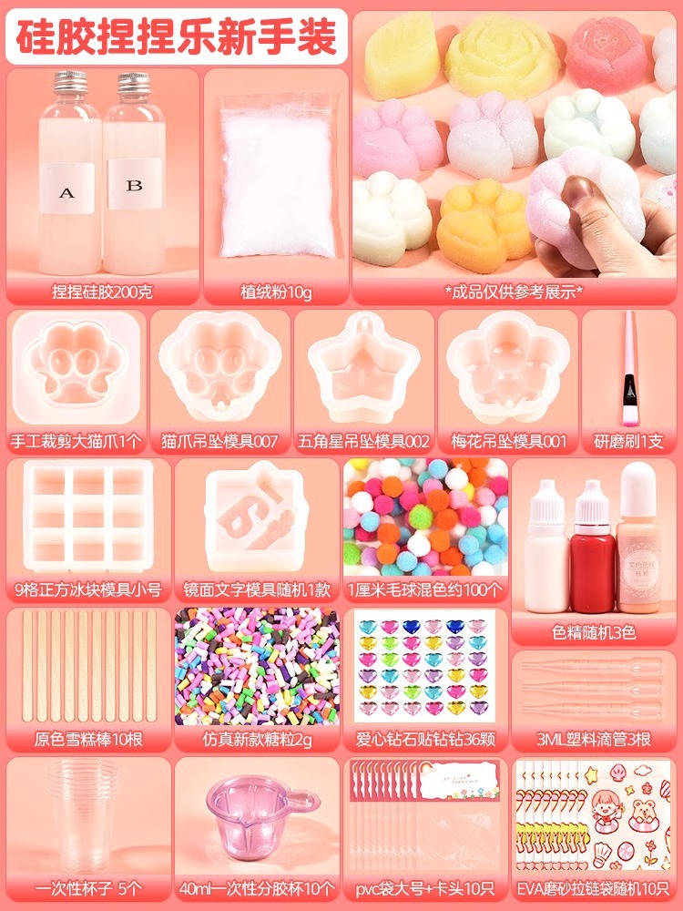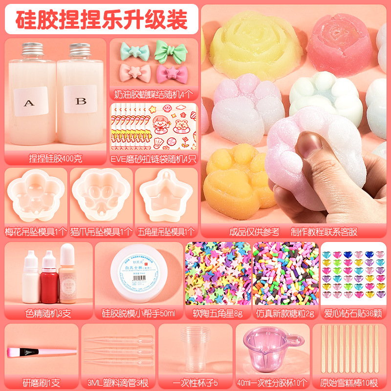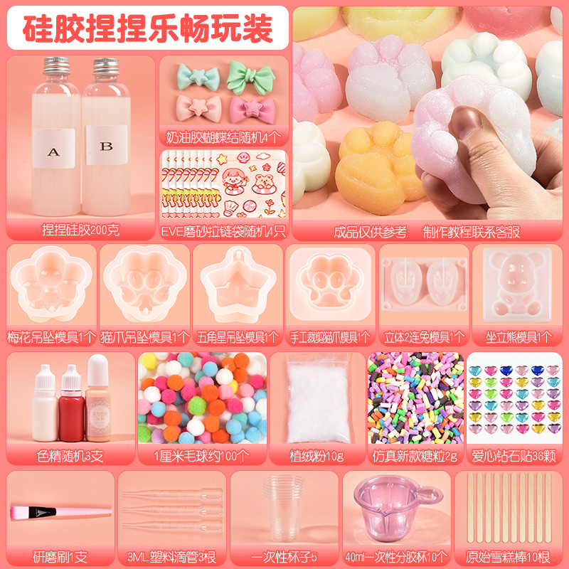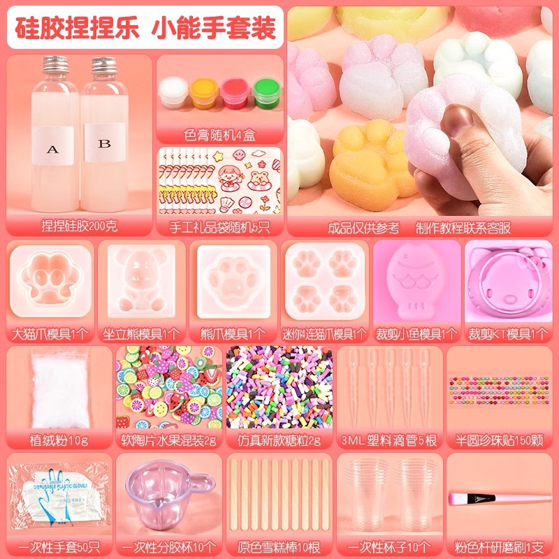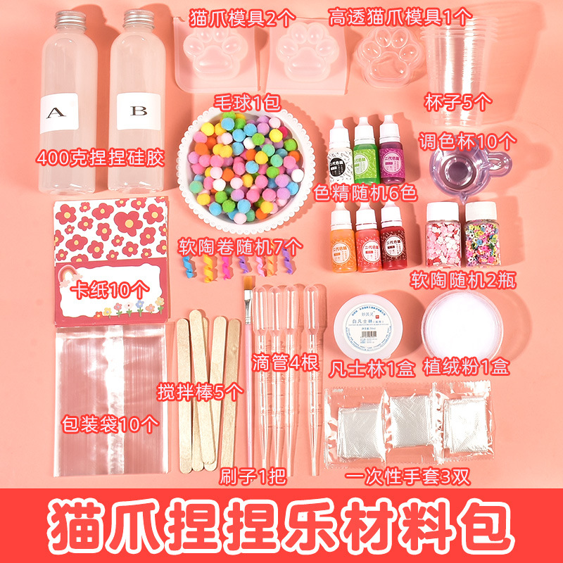 Kneifen Le Dekompression Spielzeug Mädchen hausgemachtes Silikon Kneifen DIy Handmade Material Bag Herstellung Katzen krallen Set Kinder