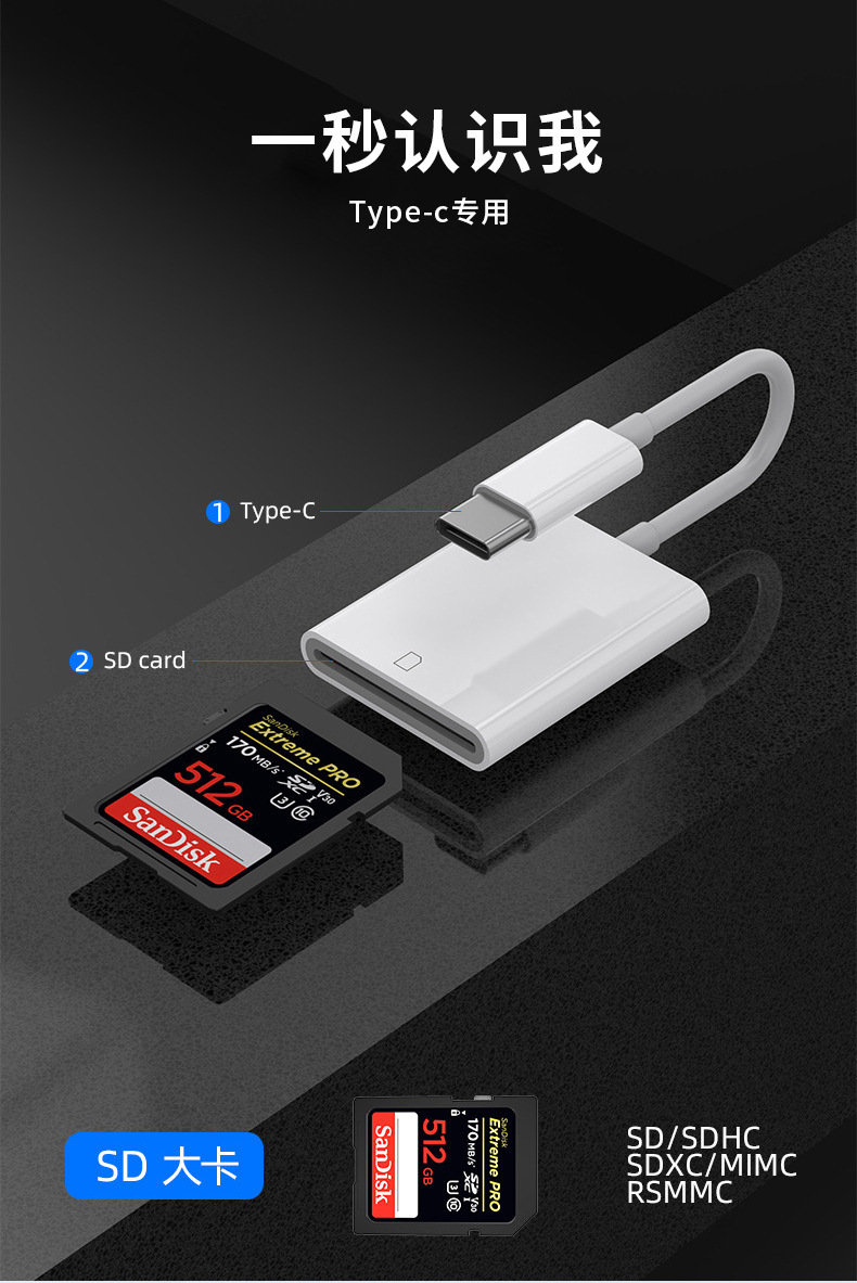 Typ-C zu SD + TF + Aufladen-weißer Perl glanz beutel