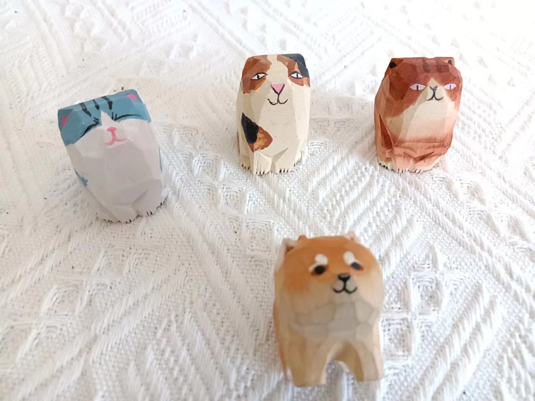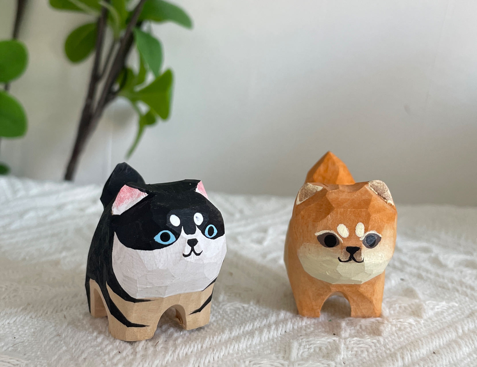 Niedliche Shiba Inu Handgemachte Holz schnitzerei kleine Dekoration Geschenk Puppe Katze kleine Tiere Desktop Dekoration