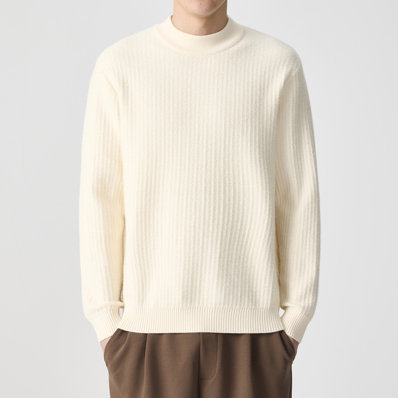 Mo Make einfarbiger halbhoher Kragen boden pullover Herren 2024 Winter krater Textur Herren pullover 20541