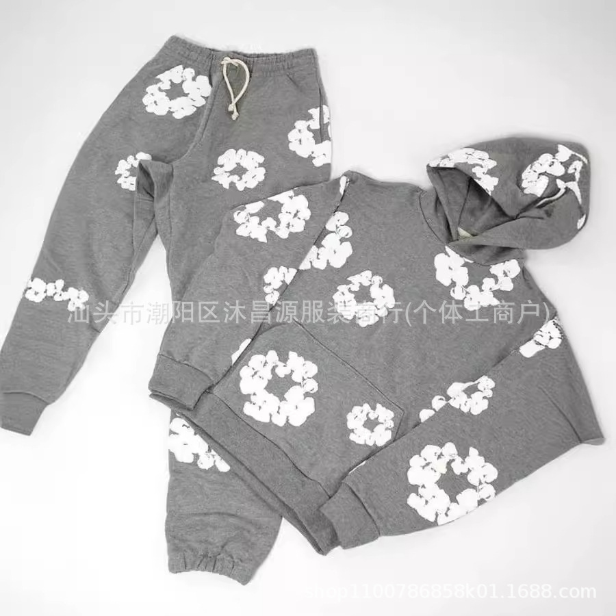 Personal isierter amerikanischer Streets chaum druck Kapuzen pullover Hosen anzug Mode All-Match lässig einfarbigen Hoodie